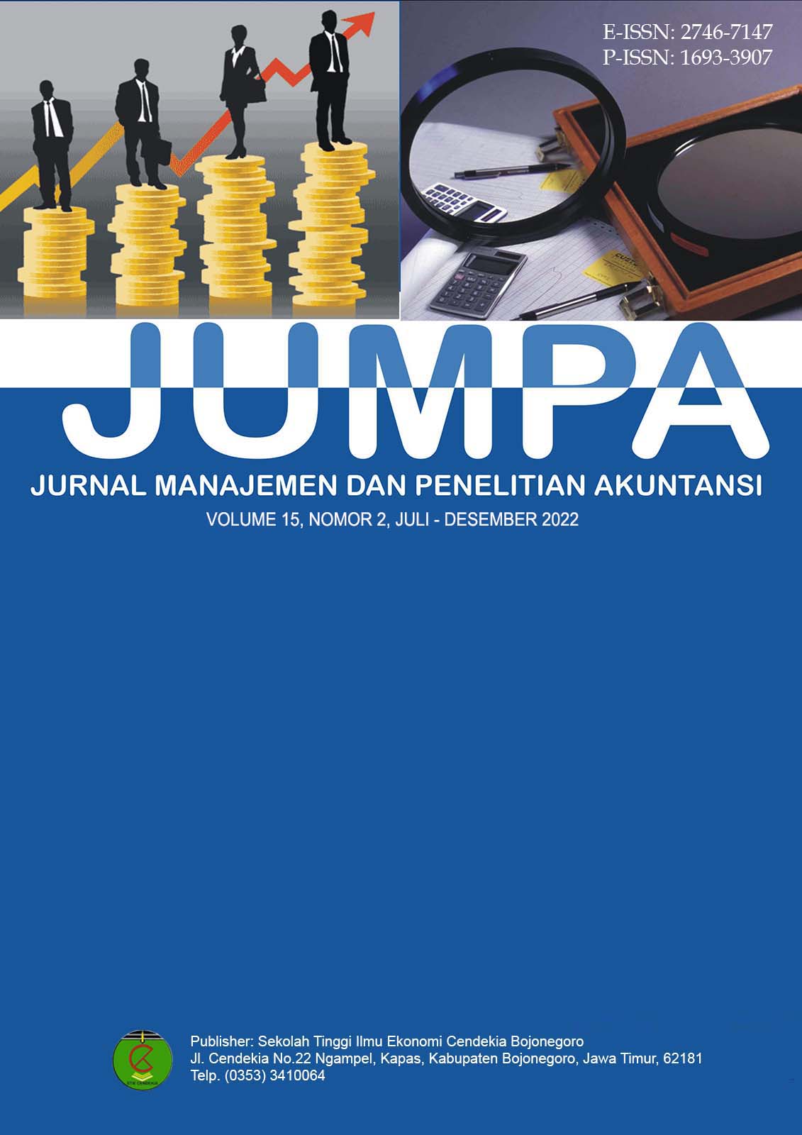 Jurnal Manajemen dan Penelitian Akuntansi (JUMPA) pada edisi ini terdiri dari 8 artikel yang berasal dari 21 author dari 5 afiliasi ( Sekolah Tinggi Ilmu Ekonomi Surakarta, Sekolah Tinggi Ilmu Ekonomi Cendekia Bojonegoro, Institut Teknologi dan Bisnis Widya Gama Lumajang, Universitas Negeri Malang, dan Universitas Bojonegoro)